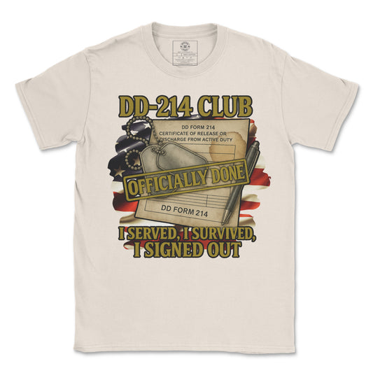 DD214 Club T-Shirt – Officially Done. I Served. I Survived. I Signed Out
